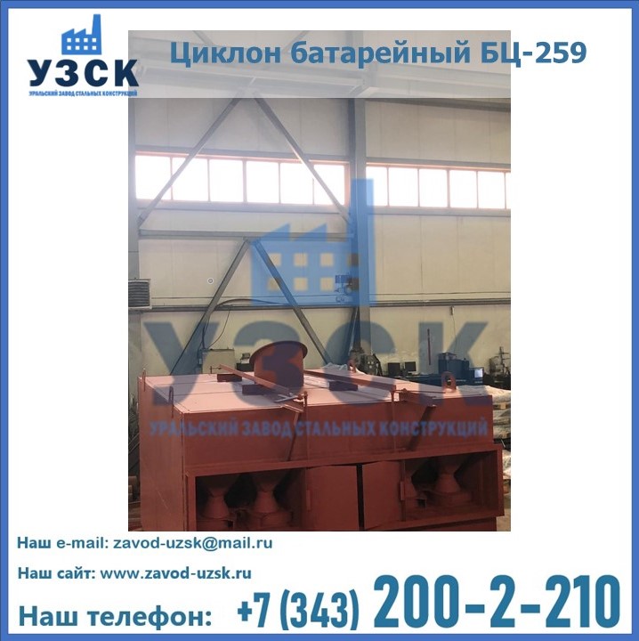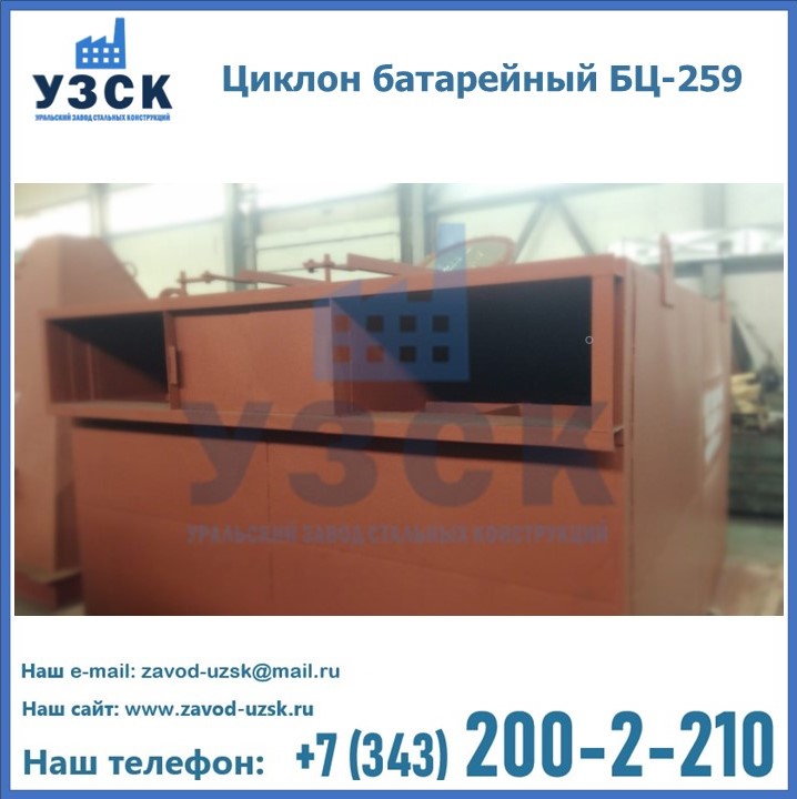 Приобрести качественное оборудование, в том числе, циклоны БЦ-259, можно в компании УЗСК в Новомосковске. Мы предлагаем долговечную и надежную продукцию по приемлемой цене. Заказать и купить циклоны или другие изделия высокого качества можно через сайт Уральского Завода Стальных Конструкций, или позвонив по указанному в разделе «Контакты» телефону.