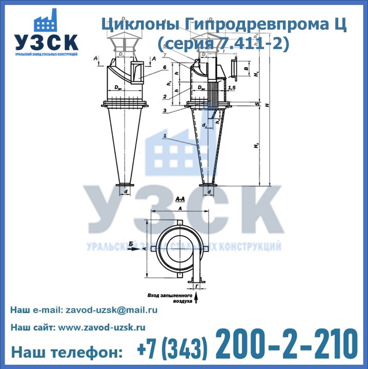 Циклоны Гипродревпрома Ц (серия 7.411-2) высокого качества можно купить в компании «УЗСК» в Новомосковске. Наши специалисты предоставят всю необходимую информацию информацию и помогут с выбором модели циклона. Подробные технические характеристики, конструкцию, параметры, ассортимент и стоимость продукции можно также найти на сайте УЗСК.