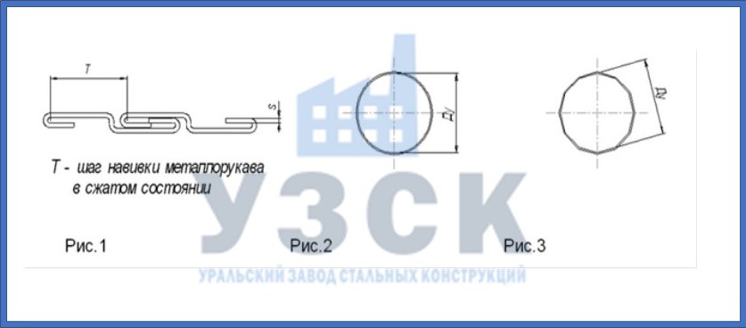 Вальцованные металлический рукав это представляют собой гибкий трубопровод. Производится методом спирального наматывания металлической ленты, которую предварительно профилируют и завальцовывают в замок (рис.1). Известны несколько видов РМВ. Их подразделяют по материалу, из которого они изготовлены: нержавеющие РМВ, стальные РМВ (производятся углеродистой стали). По ширине ленты, которую применяют для их производства: 14 мм, 20 мм. А также по поперечному профилю: цилиндрические РМВ (рис.2), граненые РМВ (рис.3).